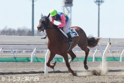 出色のタイムをマークしたシャルフジンは、吉田勝己氏の所有馬、田中淳司厩舎の管理馬、平取町の坂東牧場の生産馬。ゆっくりとしたスタートからあっという間に先団につけ、4角から直線に向くと独走状態になり、最後は後続に大差をつけてゴール板を駆け抜けた。