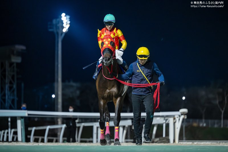 これが、王者の走りだった。今シーズン初戦となる前走「ドウデュース・プレミアム」は休み明けに加えて、ほとんど前が見えないほどの濃霧の中でのレース。角川秀樹調教師は「レース前は馬を何頭か前に置いて、その後ろで折り合いをつける作戦だった」と振り返るが、スタートで出遅れて後方からのレースを余儀なくされる中で前2頭が飛ばす展開。それでも最後は力強く追い込んだが、門別競馬場での連勝記録を「6」でストップさせてしまった。