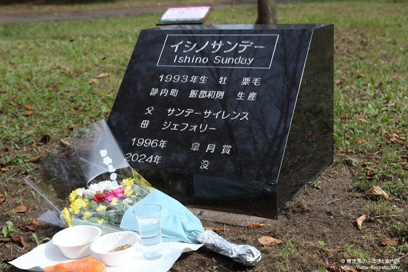 平成2年に開設された桜舞馬公園には、テスコボーイのブロンズ像が中央に鎮座。園内には活躍馬を送り出した静内にゆかりのある種牡馬や繁殖牝馬の墓碑や数多く建立されている。昨年の功労馬慰霊祭後には、イシノサンデーの墓碑を建立したほか、繁殖雌馬之碑にネームヴァリューを刻銘した。現在、功労種牡馬の墓碑は40基42頭、功労繁殖牝馬の墓碑は5基5頭、功労種牡馬之碑の刻銘は22頭、功労繁殖雌馬之碑の刻銘は71頭になる。