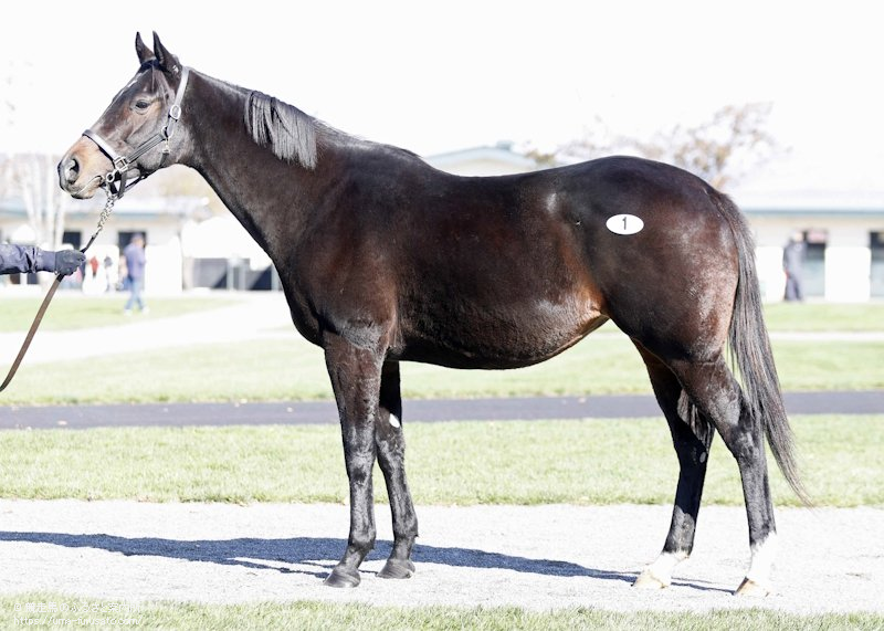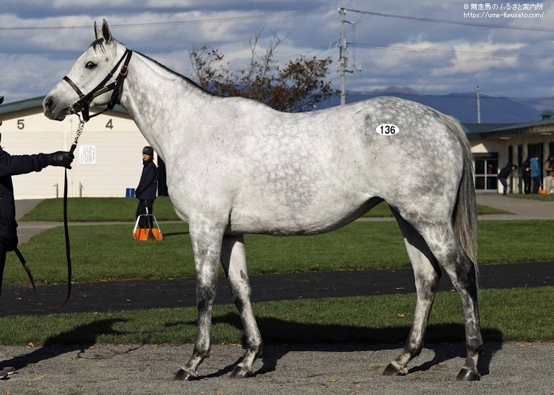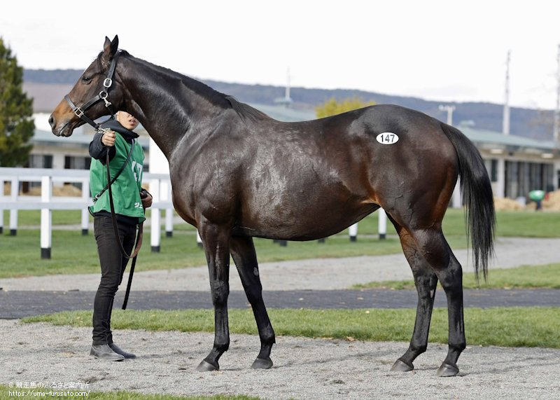 高額第3位はリオンディーズ産駒を受胎して上場された147番「ナスノフォルテ(8歳、父ジャスタウェイ)。自身2勝馬ながら、青葉賞(G2) 2着、日本ダービー(G1)3着ハーツコンチェルトの半妹いう血統。(株)UMANIXが67,100,000円(税込)で購買した。