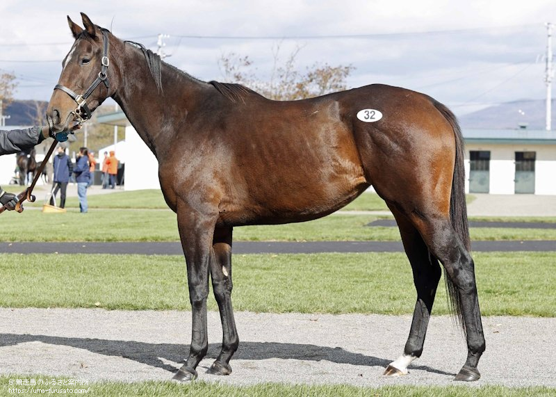 空胎馬では日本ダービー馬マカヒキ、CBC賞(G3)など重賞2勝ウリウリの半妹となる32番「アッサジャン(3歳、父ブラックタイド)」。(株)チャンピオンズファームが全体第7位となる39,600,000円(税込)で手中にした。