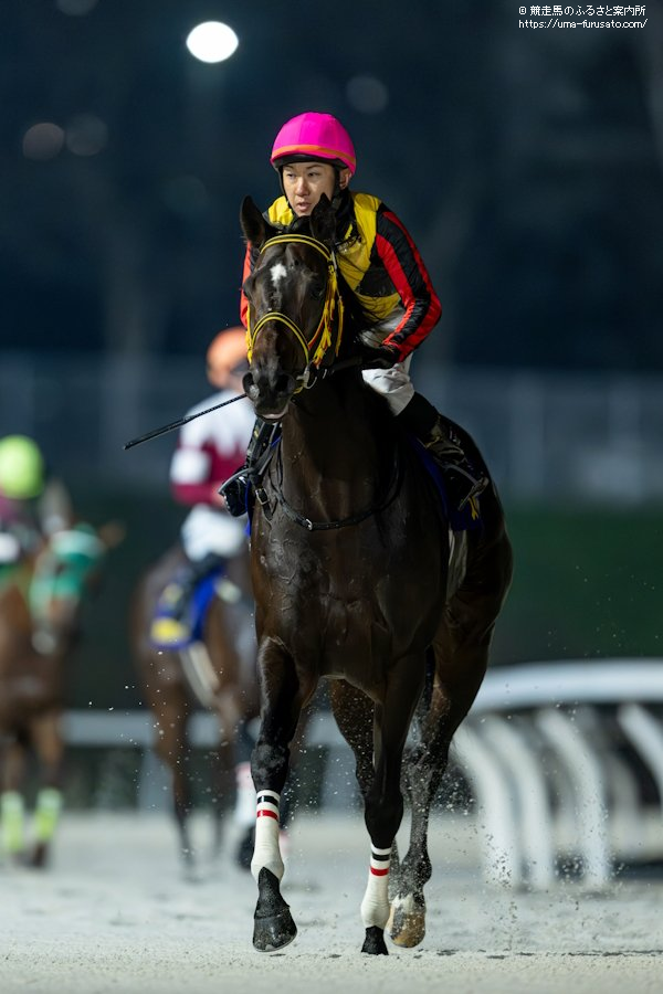 「(今年の星雲賞、秋の鞍3歳オープンで顔を合わせている)ベラジオゼロの強さはわかっていたので、理想的なポジションでマークすることが出来た」と、吉原寛人騎手。息を入れたい3~4コーナーで外からプレッシャーをかけ続ける位置でレースを進めると、4角をまわってスパート。外から馬体を併せに来たミラクルヴォイスを残り200m付近で突き放すと、懸命に脚を伸ばしてきたキャンディドライヴ、追い込みにかけたデステージョに1馬身半の差をつけて先頭ゴールインを果たし、2013年から3連覇を果たしたアウヤンテプイ、2022、2023年のスティールペガサスに続いて同レース連覇を成し遂げた。