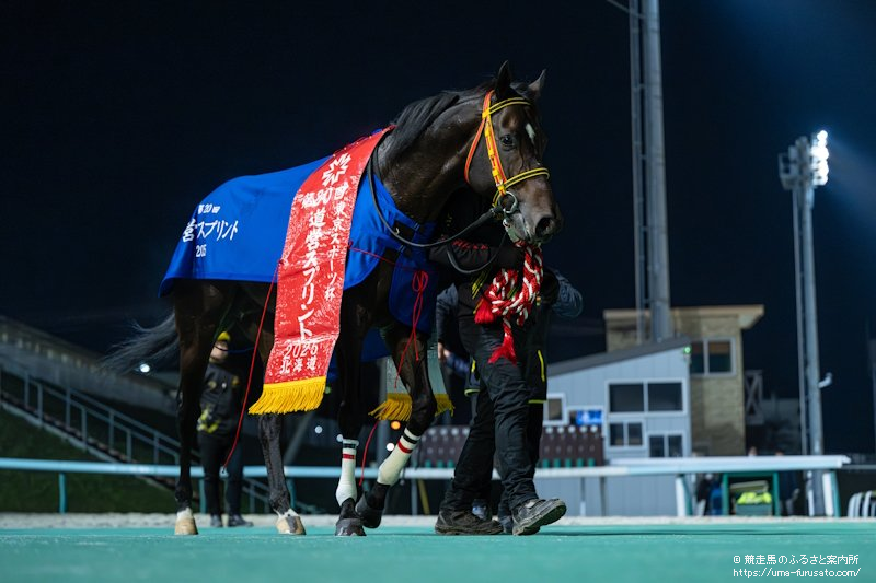 スペシャルエックスは、日高町の増尾牧場生産馬。昨年の道営スプリントを1番人気に応えて快勝し、その後、兵庫ゴールドT(Jpn3)ではJRA勢に混じって4着。さらに兵庫ウインターCでは全国から集まった猛者たちを一蹴するなど、今年はホッカイドウ競馬という枠を飛び越えた活躍が期待された1頭だった。しかし、ホッカイドウ競馬の開幕前に脚部不安を発症。シーズン前半を棒に振る事となってしまったが、鮮やかな復活劇となった。