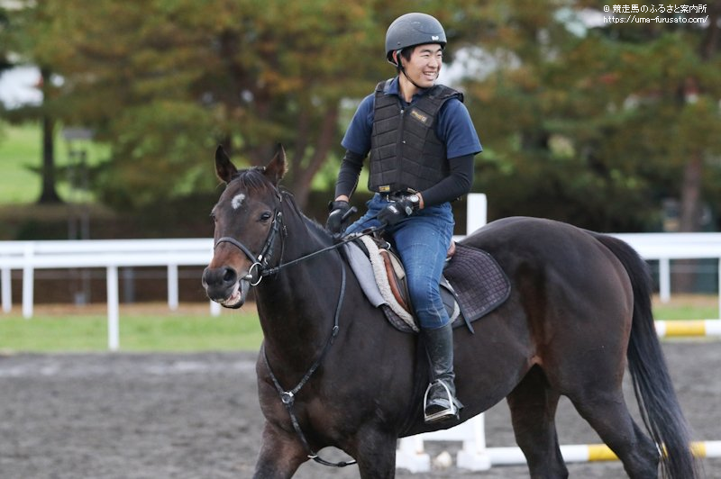 ハーグリーブスとのコンビで「障害80cm」に出場し、第3位になった仲子赤翔さん(JBBA研修生)は「騎乗したハーグリーブスは少し自己主張の強い馬なので、その点に気をつけながらメリハリを大事にして乗りました。下見ではどこから曲がるかをよく確認しました。前回の大会より馬をコントロールできましたし、緊張せずにリラックスして飛べました。タイムよりも大事に乗ることを心がけてゴールしましたが、最終的に第3位になって嬉しかったです。静内農業高等学校の皆さんは全国から馬を学びに来ていて、馬への情熱を感じました。自分も負けていられないなと思いました。今後の研修も気を引き締めて、また新しいことを吸収していきたいです」と、感想を話した。