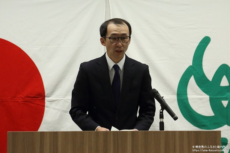 続いて、岬隼人氏が「本日、ここに、公益社団法人日本軽種馬協会2025年軽種馬後継者研修の修了式を挙行するにあたり、ひとことごあいさつを申し上げます。 本日、研修を修了される8名の研修生のみなさまには、心からお祝いを申し上げます。 近年、競馬の売り上げは、中央・地方ともに堅調に推移しており、本年のせり市場においても、安定した成績となりましたが、軽種馬生産界にはまだまだ多くの課題が残されております。これらの課題を解決し、競馬を盛り立てるには、ファンを魅了する強い競走馬を生産育成し、競馬の存在をより魅力的なものにすることがますます重要となってきており、 生産育成業務に携わるみなさまのような最先端の知識、技術を学ばれた人材が不可欠です。みなさまには、今後も自分を厳しく律して精進され、ここで学ばれた知識や技術を遺憾なく実践の場で発揮されることを心から願っております。今後とも健康に留意され、ホースマンとして研鑚に努め、わが国の競馬発展に貢献すべく、生産界に新たな活力をもたらす原動力にぜひなっていただきたいとおもいます」と河野洋平会長理事の式辞を代読した。