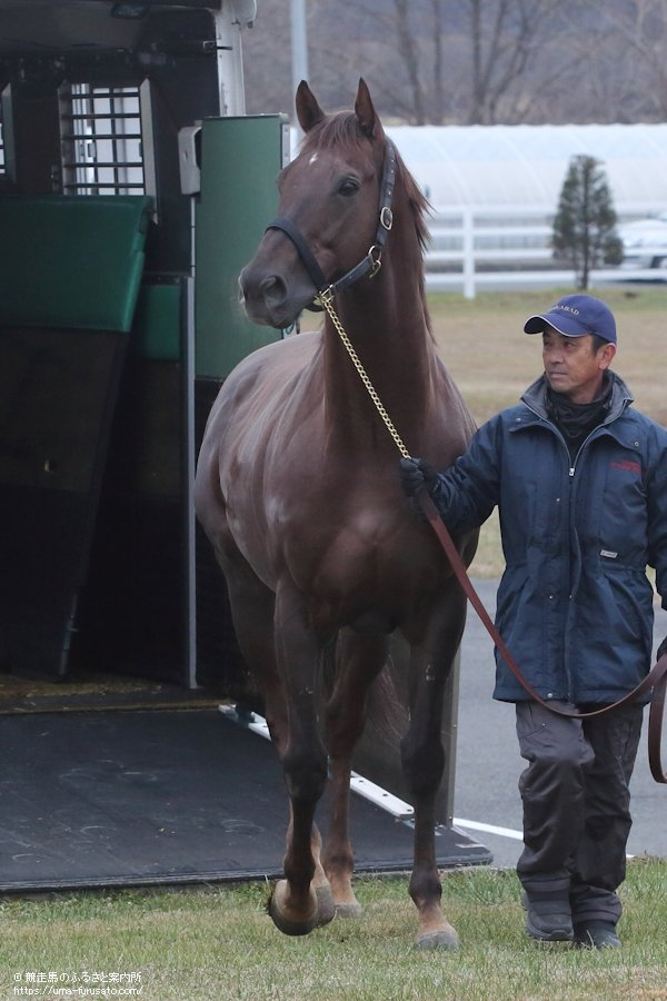 11月6日付けでJRAの競走馬登録を抹消。休養していた滋賀県にあるノーザンファームしがらきから福島県にあるノーザンファーム天栄を経由して、優駿スタリオンステーションの飛渡清一代表やスタッフ、事務局(株)優駿の村田康彰社長や森永聡副社長といった役職員らが出迎える新天地に到着した。