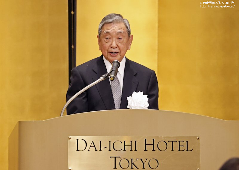 式典に引き続き行われた祝賀会で出席関係者が旧友を温める中、公務を終えた自由民主党競馬推進議員連盟の橋本聖子会長も駆けつけ「次の時代に、どのような形で競馬をつなげていくのか。決して、来た道に帰るということではなく、新しい競馬産業をどのように構築し、そして世界のエンターテイメントとなっていくような、そんな競馬づくりというものを日本軽種馬協会のみなさまには導いていただきたい」と、エールを贈った。
