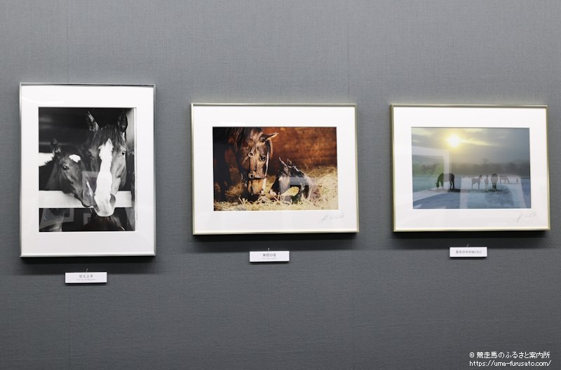 今回の写真展は牧場の四季が表見されているだけでなく、その中には内藤さんが、「これ以上の写真を撮影したいと思いながら、カメラマンを続けています」と語る、「無償の愛」とのタイトルが付けられた、イットーが9番仔となるチュニカオーの生後間もない姿の写真や、写真集の「白の時間 名馬オグリキャップ引退後二十年の日々」で使用されていない、オグリキャップの貴重な写真も展示されている。