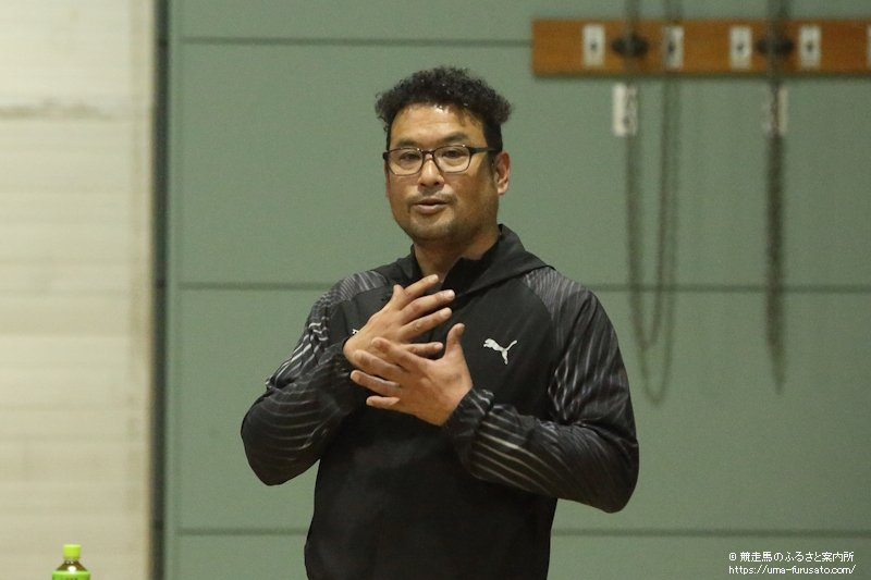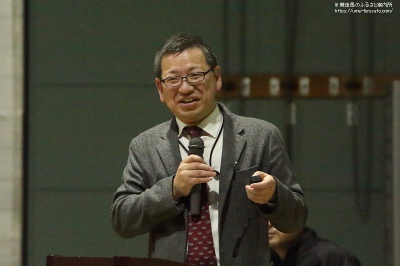 講習会の開催にあたり主催者を代表して三石軽種馬生産振興会会長の前田宗将氏は「本日は予想を上回る人がきていただきまして、まことにありがとうございます。講習会を企画し、JRAの丹羽秀和先生、三石で乗馬クラブをやっているMK Ranchの根城健太さんに講師を依頼したところ、快く引き受けてくださりありがとうございます。本日は年明け間もなく各牧場で生産、当歳もどんどん生まれてくるとおもいますので、当歳の感染症について、出産前に改めて知識を入れるということで企画しました。また、根城健太さんに関しては展示と駐立という、お客さん用の写真を撮る、せりのときにどうやって立たせるとか、展示するとかということの参考にしていただきたく企画しました。最後まで聞いていただいて今後の参考にしていただきたくおもいます。よろしくお願いいたします」とあいさつした。