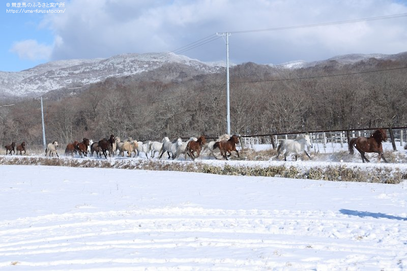 続いてどさんこの主な食べ物となるクマザサが豊富にある別の林間放牧地に移動するどさんこを間近で見学。雪道を縦列になって疾走する姿に目を奪われた。