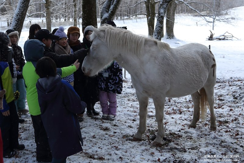 1月8日、新ひだか町静内御幸町にある一般社団法人umanowa(糸井いくみ代表)が主催するひだかうまキッズ探検隊2025は、新ひだか町静内御園にある国立大学法人北海道大学北方生物圏フィールド科学センター静内研究牧場において、どさんこ(北海道和種)について学んだ。