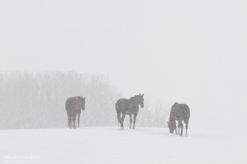 写真5 [吹雪の中] 風雪が強くなり、馬たちの姿が消えてい く。