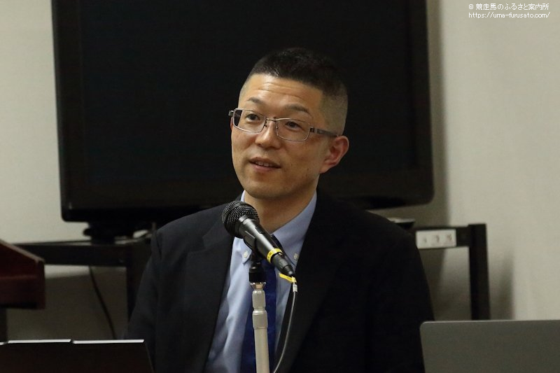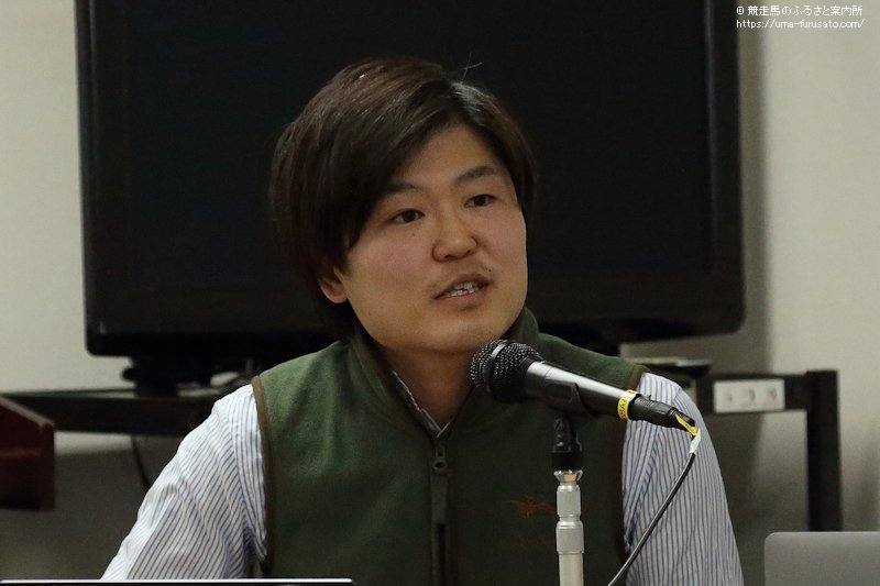 研修会に先立ち、主催者を代表して公益社団法人日本軽種馬協会静内種馬場場長の遊佐繁基氏があいさつ。「本日はお忙しいなか、多数のご来場、また、オンラインで参加していただきましてありがとうございます。本日は3名の先生に海外研修の報告をしていただきます。この海外研修報告会を通して地域に知識を還元していただければとおもいます。長丁場になりますが、どうぞよろしくお願いいたします」と呼びかけた。