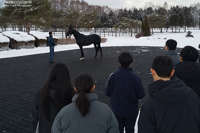 これまで研修コース合同見学会は暖かい時期に開催していたが、1月の開催は初めて。緑鮮やかな夏の北海道だけでなく、寒さが厳しい冬の北海道、雪景色になる北海道の馬産地も見てもらおうと企画したところ、15歳から30歳までの30人が参加した。