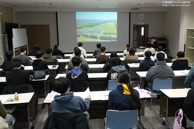 研修寮では生産育成技術者研修の歴史、講義内容、就職実績、募集要項、研修費用などを説明。初日最後は第47期生との質疑応答や研修寮の見学、ホースシミュレーター騎乗体験などで研修への理解を深めた。