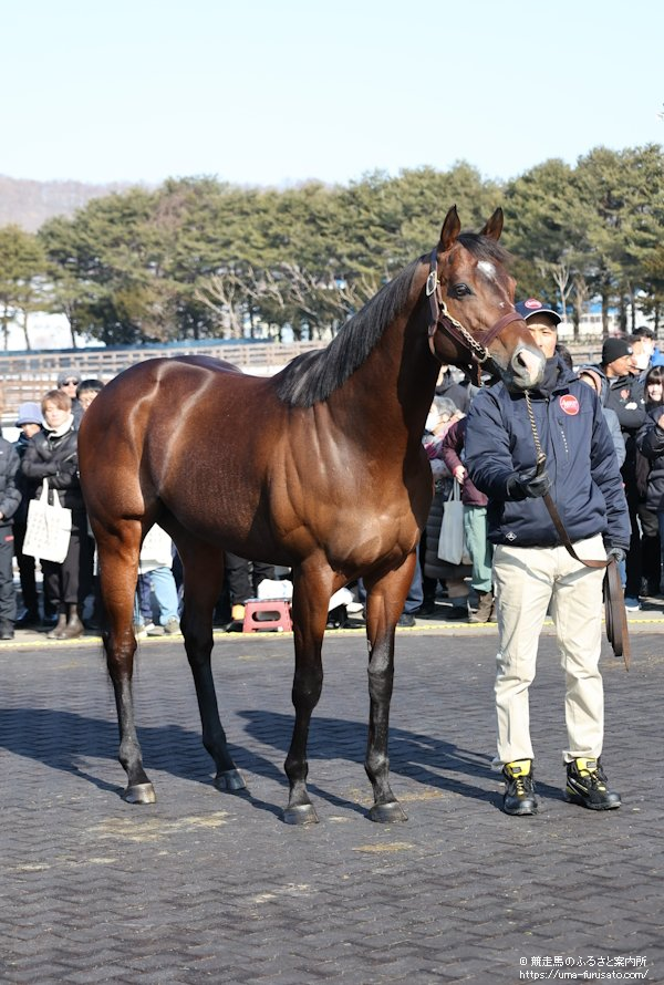 続いて展示が行われたのは、2月1日にスタッド入りしたばかりのミスティックロア。他の種牡馬たちよりもシャープには映るが、それでも現役時は500kgを超える馬体で競馬をしていた。今後は種牡馬としての経験を重ねながら、更に逞しさを増していくだけでなく、世界的な良血を産駒へと伝えてくれそうだ。