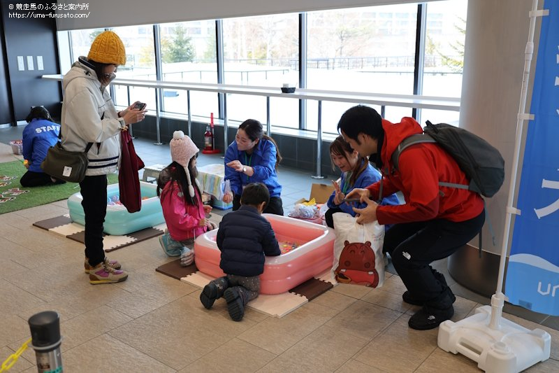 その中でもコース前を疾走するスノーラフティングは、早い時間から受付に長い列ができあがっていただけでなく、先着100名を対象とした子ども縁日も、開門早々に定員に達する人気ぶりだった。