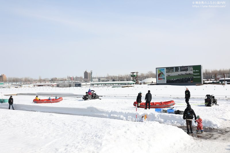 また、過去にはさっぽろ雪まつりの協賛行事として、「札幌競馬場雪フェスタ」を開催。様々な冬のアトラクションに加えて、馬ぞり体験やポニーとのふれあい体験などを行ってきた。そして、昨年の2月には、まきばガーデンに雪のすべり台や馬の雪像を制作していた。