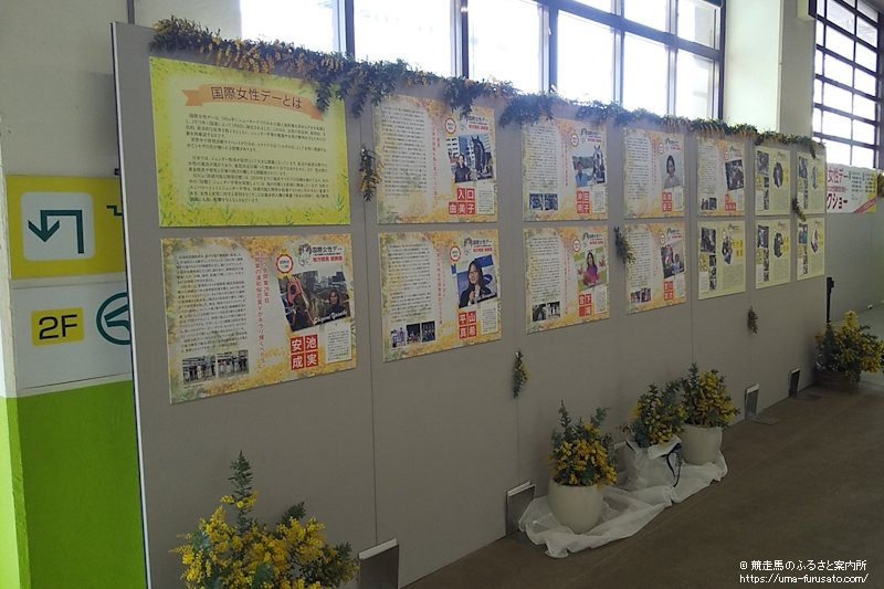 また、場内では先着500人に国際女性デーイベント冊子と入浴剤をプレゼント。国際女性デーの概要および趣旨を紹介するパネルや女性調教師や帯広競馬場で働く女性スタッフの業務を紹介する、国際女性デー啓発「ミモザブース」パネル展も開催された。