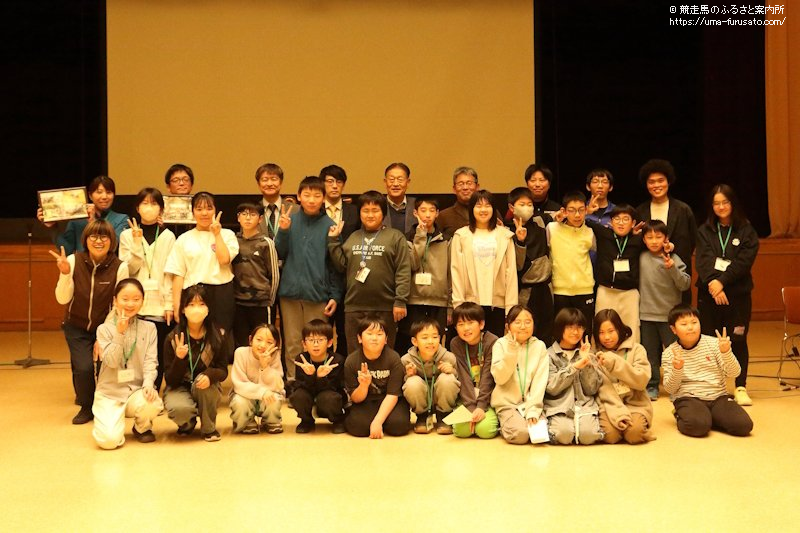 その総まとめとなるふりかえり会には、ひだかうまキッズ探検隊2025の隊員やその家族、一般社団法人umanowa代表の糸井いくみ氏、ひだかうまキッズ探検隊2025を受け入れた軽種馬関連施設の関係者などが出席。競馬ソングシンガーとして多方面で活躍するブルーノ・ユウキ氏が司会進行を務めた。