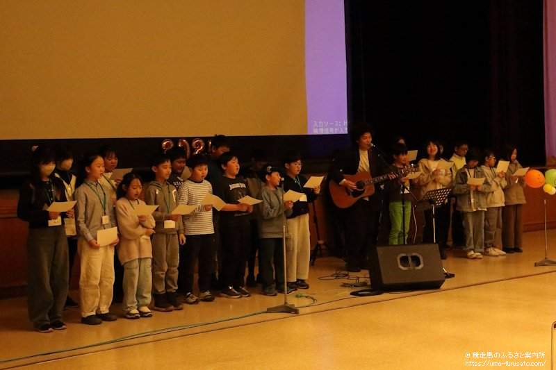 記念品贈呈のあとは、全11回の活動をふりかえる動画を放映。ブルーノ・ユウキ氏と子どもたちによるひだかうまキッズ探検隊のテーマソングが披露された。