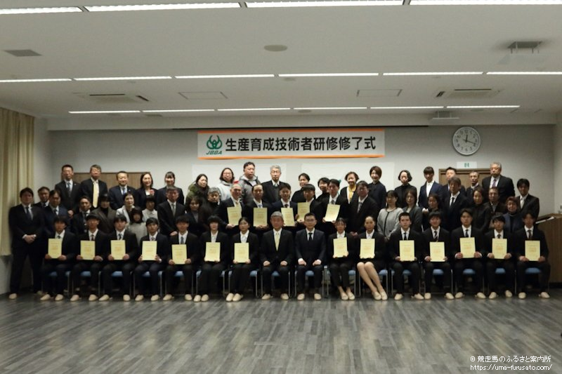 3月19日、新ひだか町静内田原にある公益社団法人日本軽種馬協会静内種馬場において、2025年(第47期)生産育成技術者研修修了式が執り行われた。