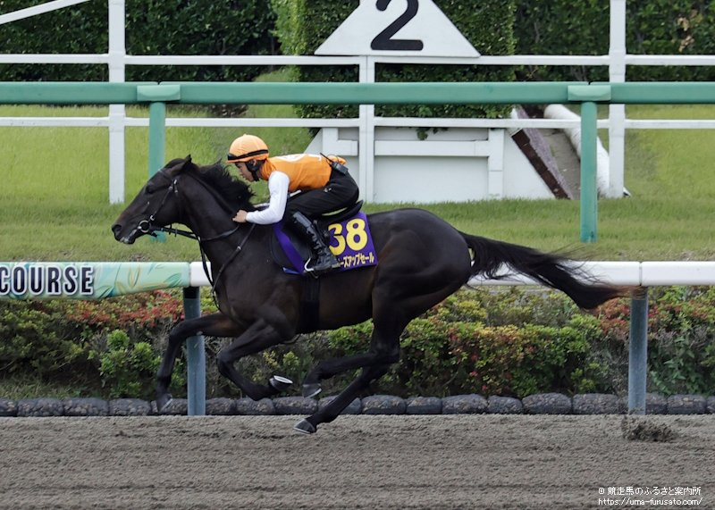 2ハロンの合計タイムで最速をマークしたのは、昨年のサマーセールで購入した「ツウカイエオス2024(牡、父フォーウィールドライブ)」の23秒1(11秒8~11秒3)。JRA職員が騎乗し、回転の速いフットワークで栗毛の馬体を躍動させた。2025年に北海道スプリントC(Jpn3)、サマーCh(Jpn3)、東京盃(Jpn2)とダートグレード競走の短距離重賞を3連勝したヤマニンチェルキやネクストスター北日本に勝ち、北海優駿2着バリウィール、ネクストスター高知を逃げ切ったドライブアウェイなどを送り出した父の3世代目産駒。母はJRAからホッカイドウ競馬に移籍して5勝を記録した快足馬で2009年の仁川Sを勝ったエスケーカントリーを叔父に持つ血統馬だ。