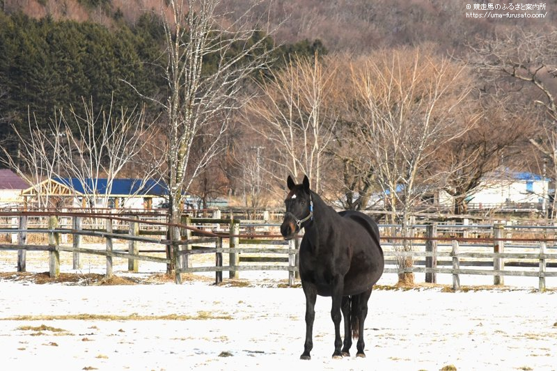 「生まれて間もない頃のリュウノフライトはお転婆で、私もよくかじられたり蹴られたりしました。でも徐々に穏やかになってきて、離乳してからはひとりでポツンといることが多かったですね。一緒に放牧している馬たちが群れになって走っても、それを遠くから眺めている感じでした。放牧地で走っているのを見たことがなく、『この仔は走るのが好きじゃないなのかな?』と家族で話していたほどなんです(笑)。ただ病気や怪我もせず、順調に育ってくれました」と牧場にいた時代を振り返る。レースの時はメンコを付けているので目立たないが、大きくて派手な流星が印象的な顔立ちで、当時は高校生だった娘さんもかわいがっていたそうだ。